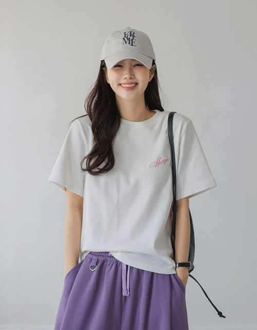 - 스크립트 자수 반팔 티셔츠_61TS1690