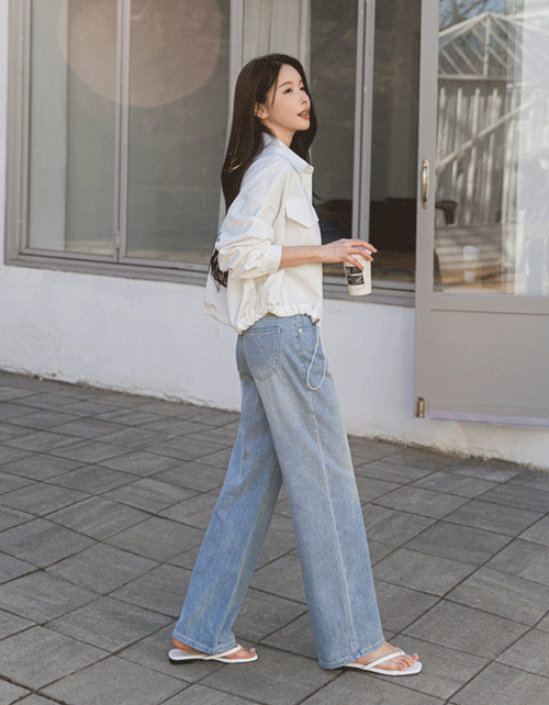 - [데님라이크] 헤이리 스티치 와이드 밴딩팬츠(사계절VER)_53PT677