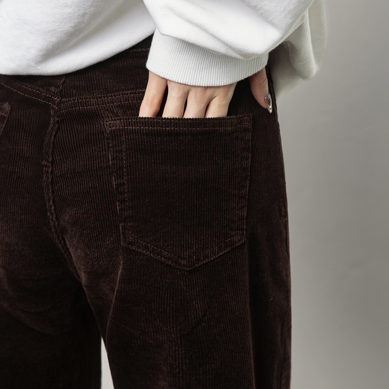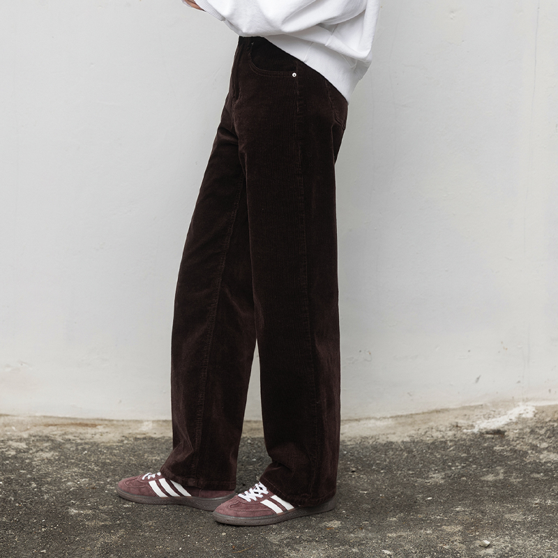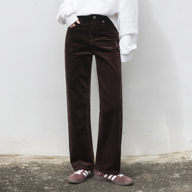 코듀로이 소재로 제작된 스트레이트 핏 팬츠입니다.