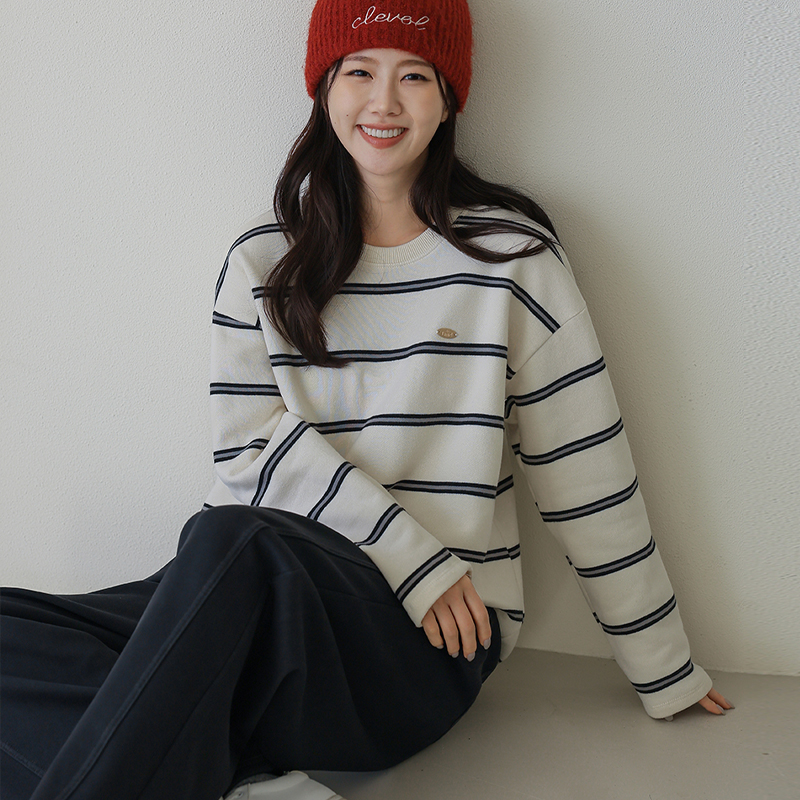 프레즐 스트라이프 기모 맨투맨_54TS1292