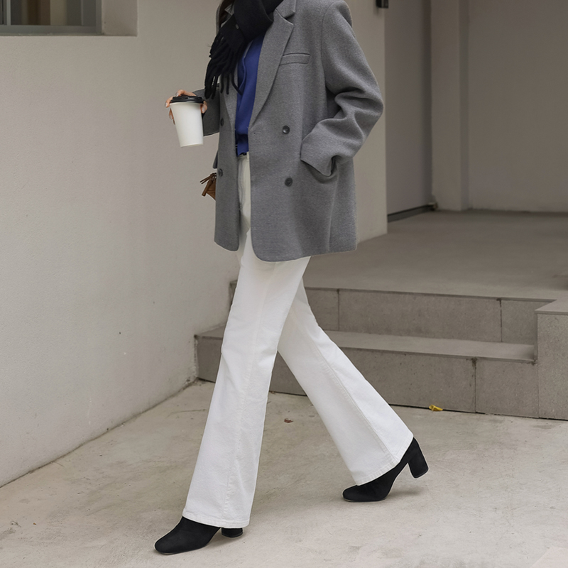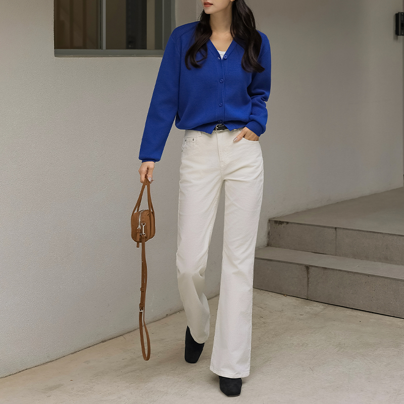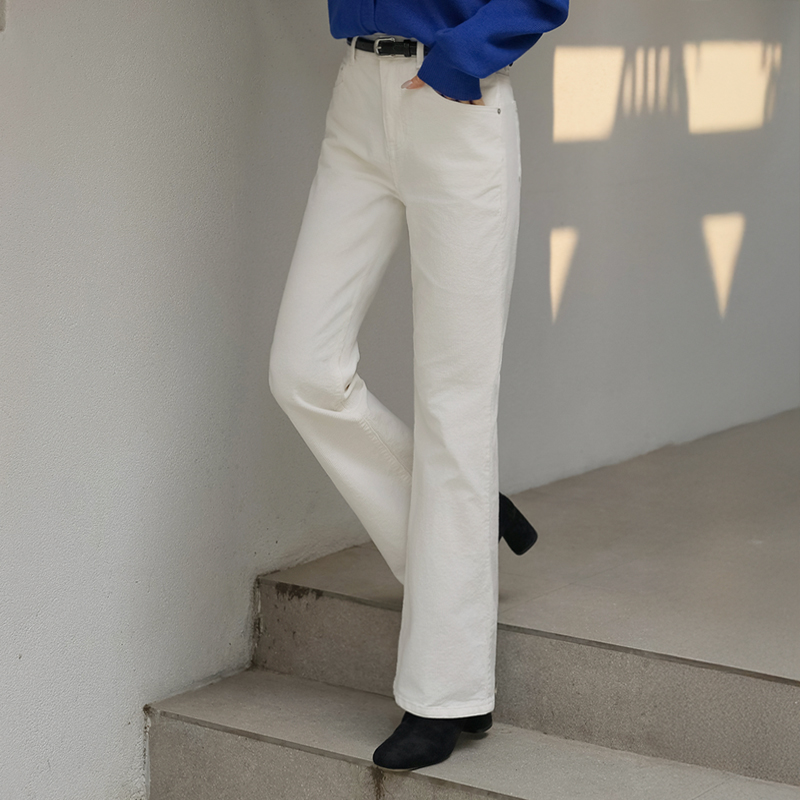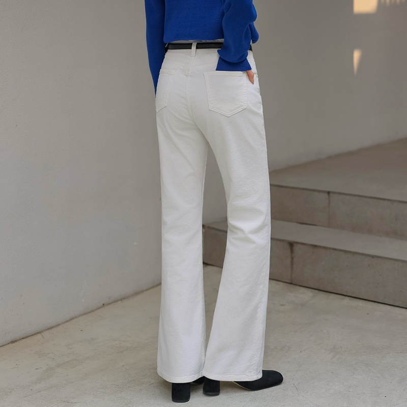 심플하면서도 세련된 무드의 부츠컷 코듀로이 팬츠로