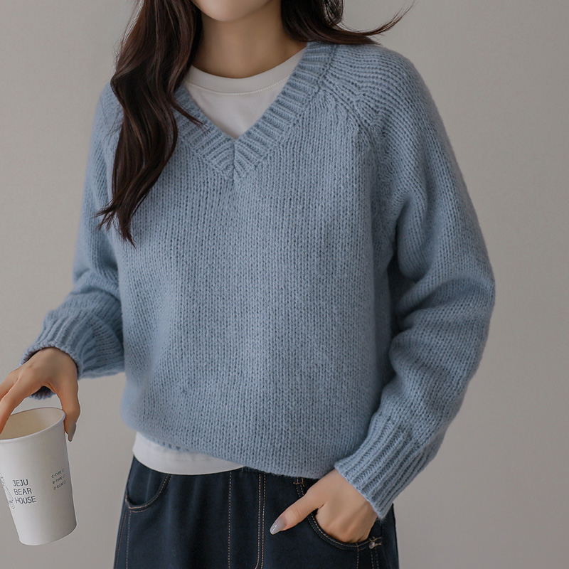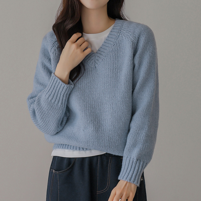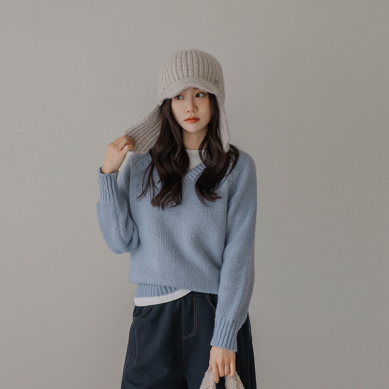 브이넥은 얼굴선을 부드럽게 정리해 주는 여리한 분위기를