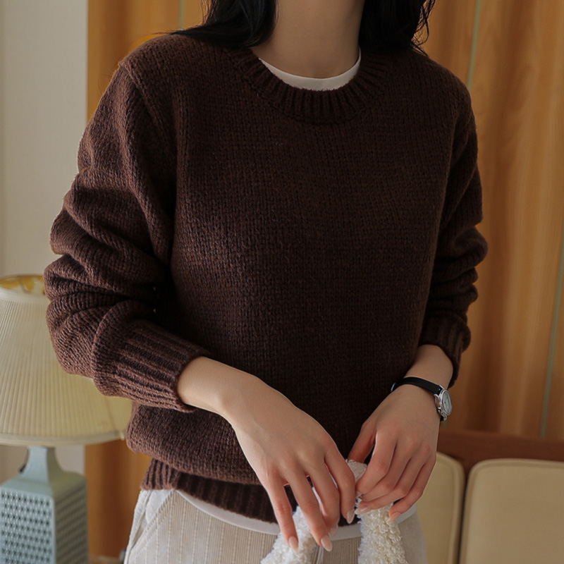 라운드넥은 단정하고 클래식한 무드를 연출해