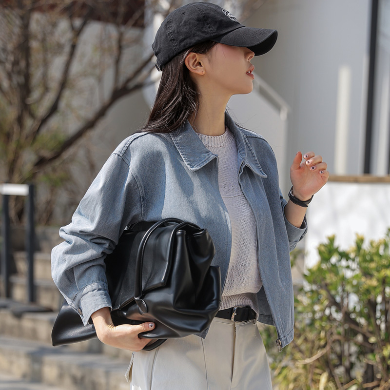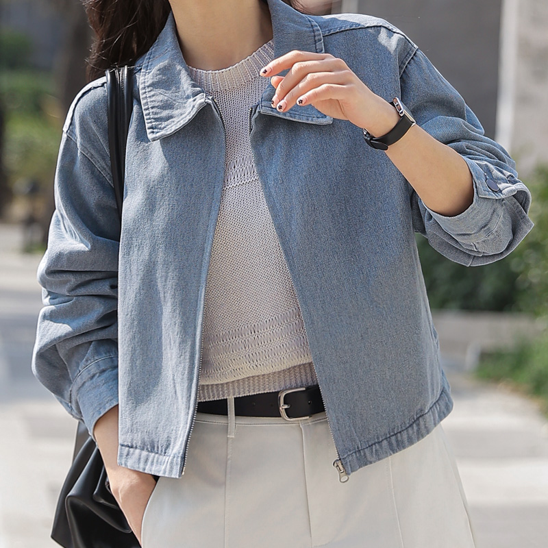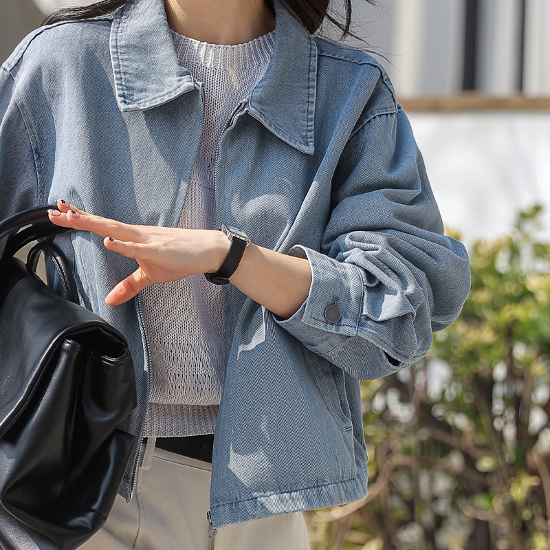 세련된 워싱감이 돋보이는 데님 블루종입니다.