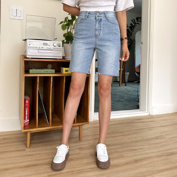 시원한 연청 컬러감에 옆 트임 슬릿 스타일로