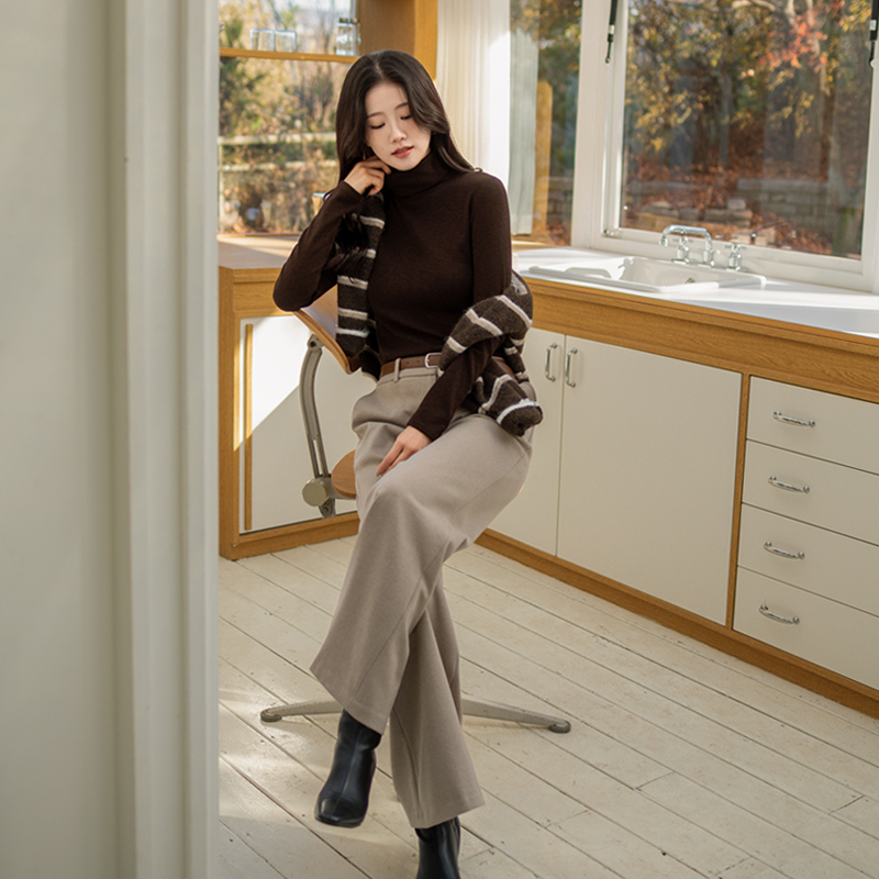 자연스럽게 퍼지는 와이드 부츠컷 라인으로