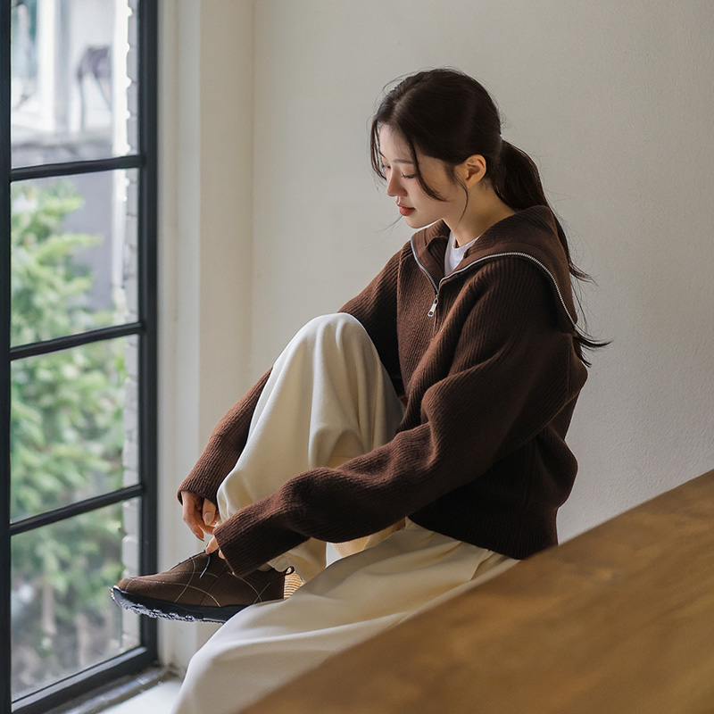 지퍼를 조절해 다양한 스타일로 연출할 수 있으며