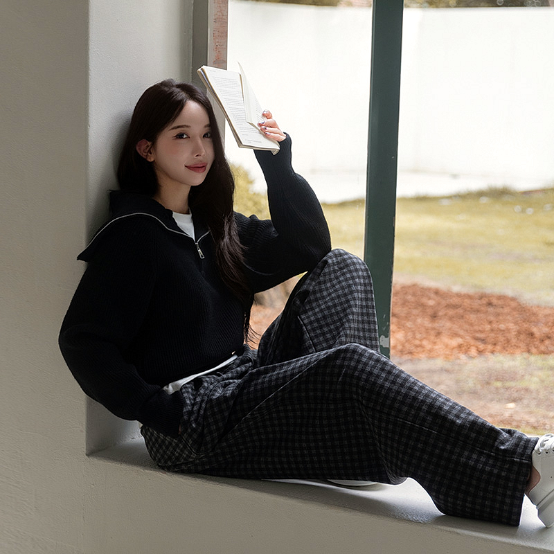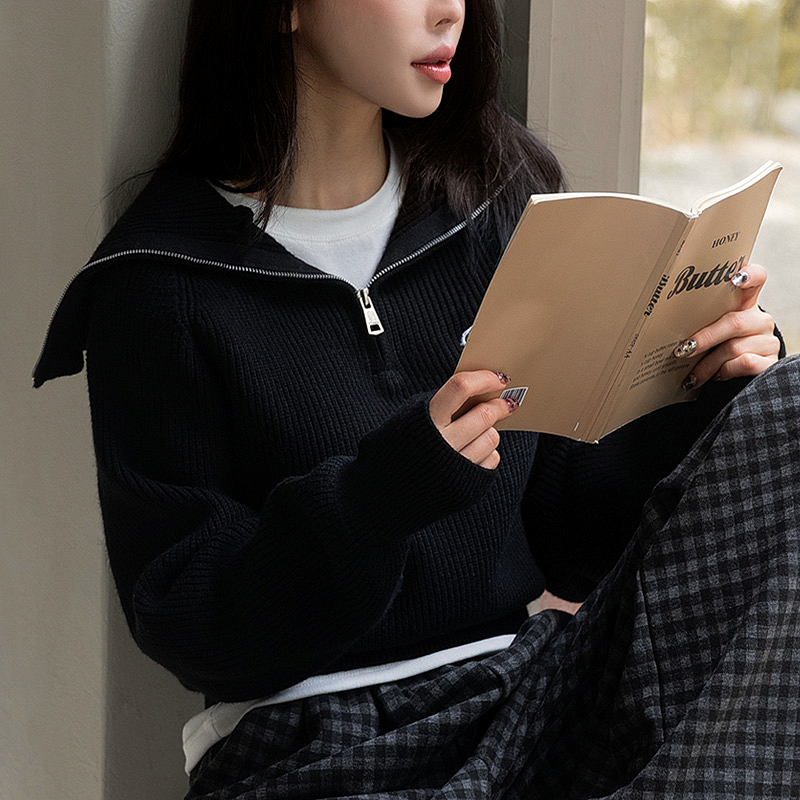 세련된 분위기를 연출하는 카라넥 니트입니다.