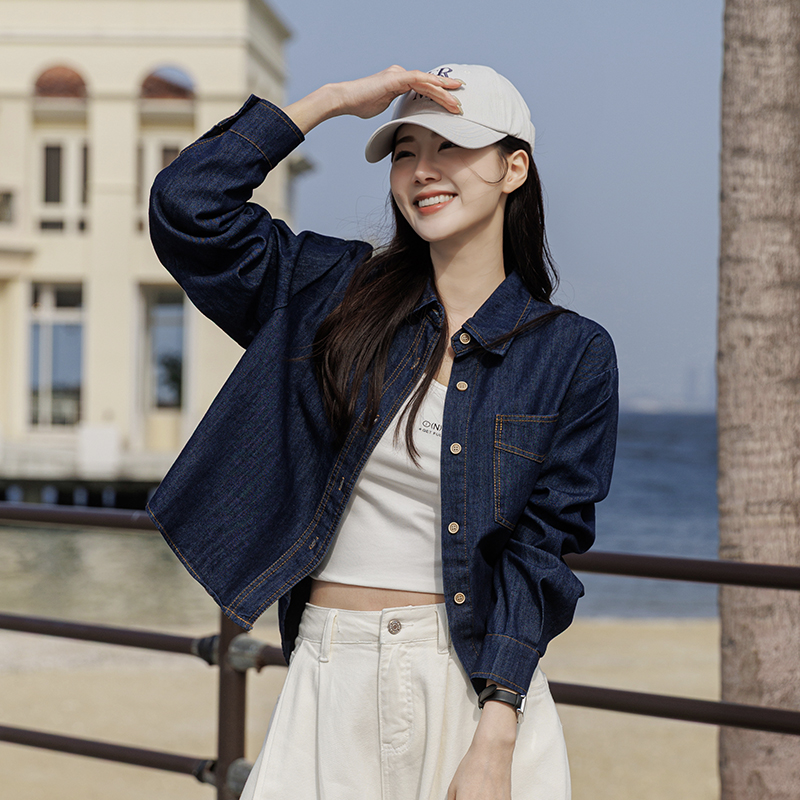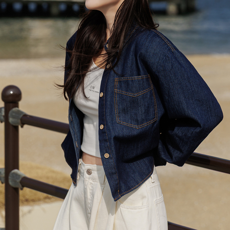 깔끔한 무드를 살린 세미 크롭 셔츠입니다.
