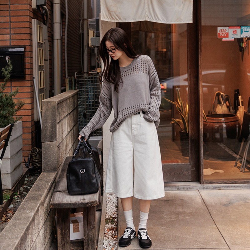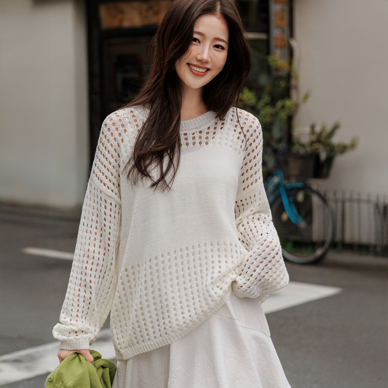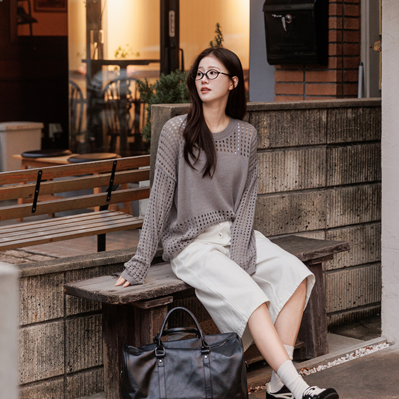 은은한 비침과 펀칭 디테일이 매력적인 니트입니다.