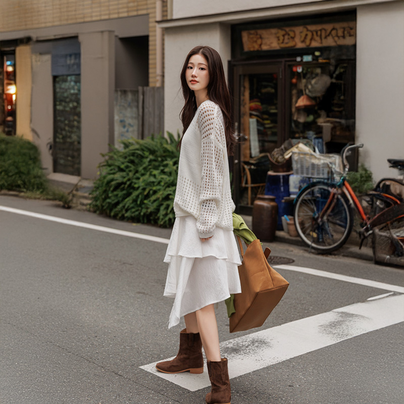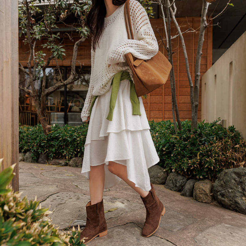 스커트와 함께 페미닌하게 연출하거나