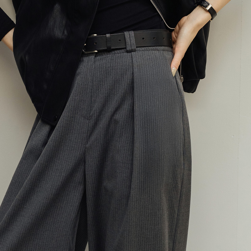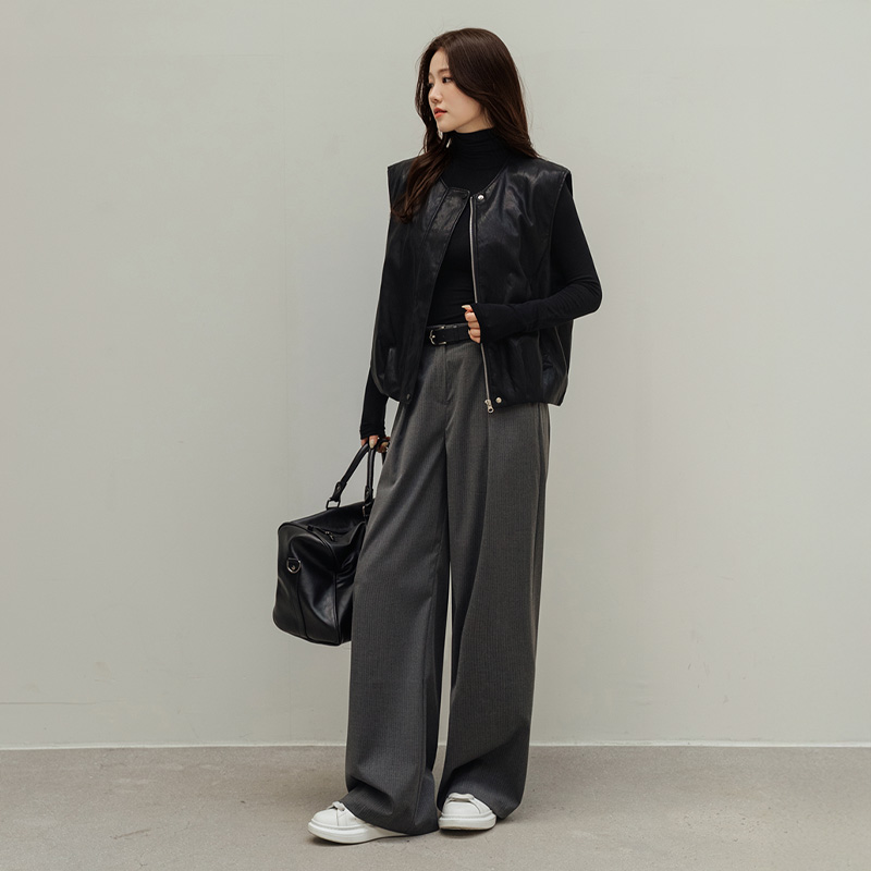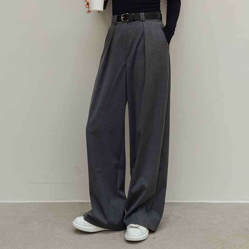 [FRANCAIS] 페니타 핀턱 스트라이프 와이드 슬랙스_F6S227SL