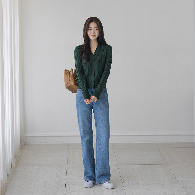 [HJ모델] 그린(브이넥) 컬러|FREE size 착용 모델사이즈 HJ 167cm / 26in / 55size