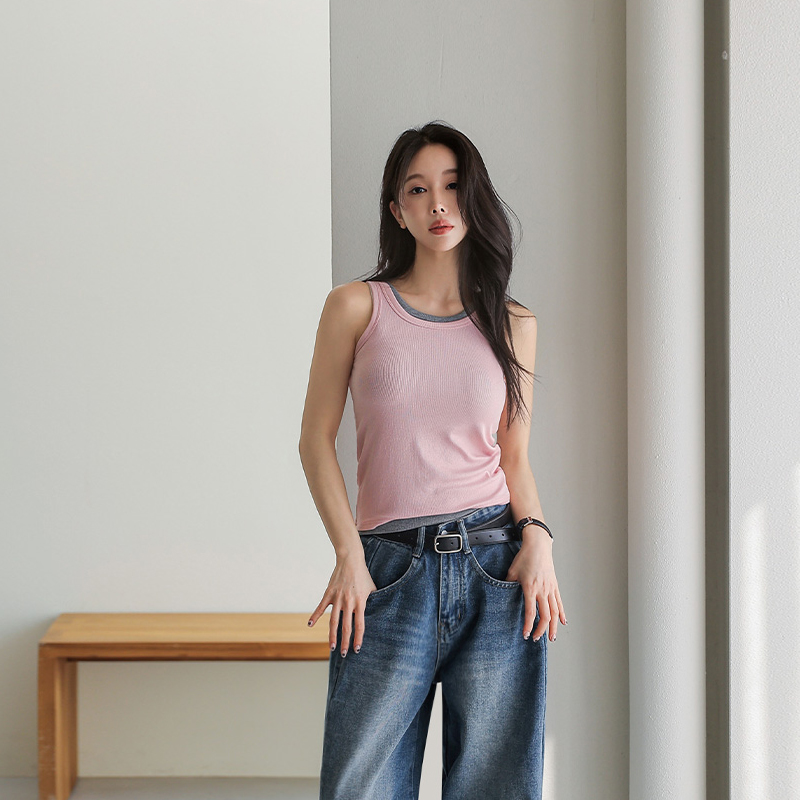 슬림하고 가녀린 실루엣을 연출해 주는 골지 나시입니다.