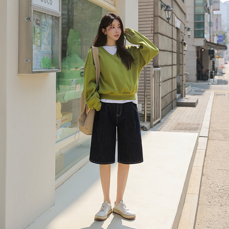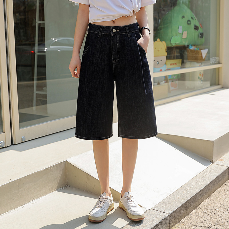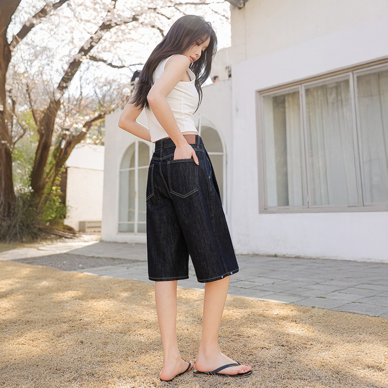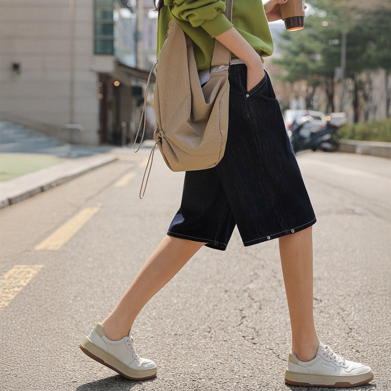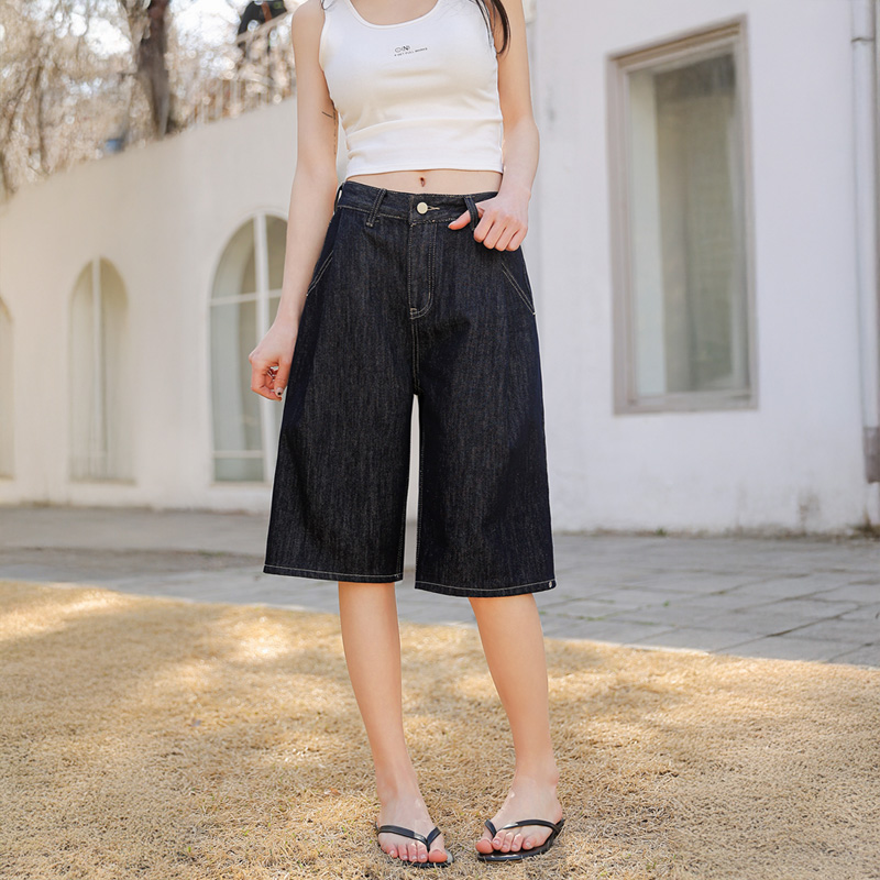 세련된 무드를 선사하는 버뮤다 데님 팬츠입니다.